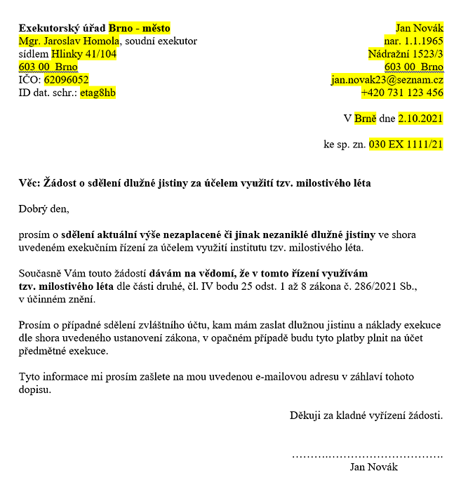 a 908 Kč (poplatek + DPH), odpustí se mu zbytek dluhu. Podrobnosti v přílohách.